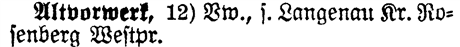 See Langenau Kr. Rosenberg Westpr. - A See notation means the entry is dependent on another entry. In this case, Altvorwerk is dependent on Langenau Kr. Rosenberg Westpr., which should be consulted for additional information.
