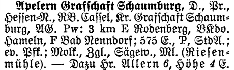 Entries where Apelern Grafschaft Schaumburg is referenced as See