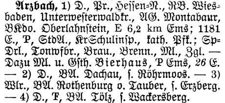 See Wackersberg - A See notation means the entry is dependent on another entry. In this case, Arzbach is dependent on Wackersberg, which should be consulted for additional information.