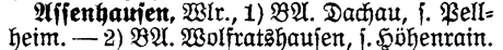 BA Wolfratshausen - The Bezirksamt for Assenhausen is Wolfratshausen. The Bezirksamt is the District Office.