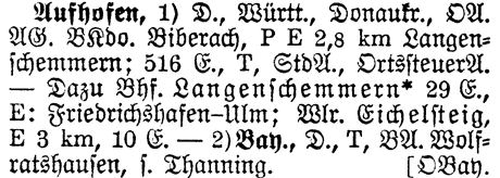 The list below are those places from the Meyers Gazetteer that are nearby to Aufhofen