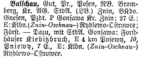 Prov Posen - The Province shows which Province or State the place is located in. Balschau is located in Posen.