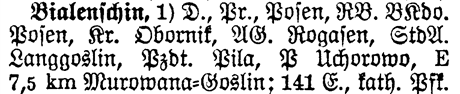 Prov Posen - The Province shows which Province or State the place is located in. Bialenschin is located in Posen.