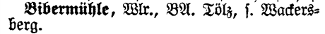 See Wackersberg - A See notation means the entry is dependent on another entry. In this case, Bibermühle is dependent on Wackersberg, which should be consulted for additional information.