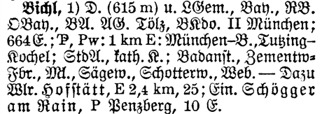 The list below are those places from the Meyers Gazetteer that are nearby to Bichl