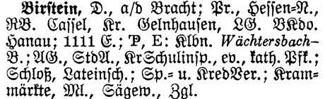 Prov Hess. -N. - The Province shows which Province or State the place is located in. Birstein is located in Hessen-Nassau.