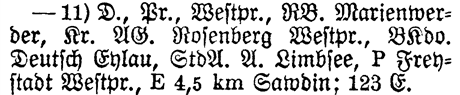 Prov Westpr. - The Province shows which Province or State the place is located in. Bischdorf is located in Westpreussen.