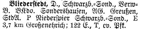 BKdo Sondershausen - The Bezirkskommando for Bliederstedt is in Sondershausen. The Bezirkskommando is the District Military Command. You can look in the BKdo to find military records.