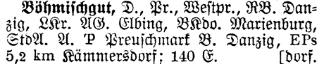 A Preuschmark B. Danzig - The Amtsbezirk for Böhmischgut is Preuschmark B. Danzig. The Amtsbezirk is the District Office.