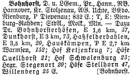Type D. u. LGem. - Bohnhorst B. Bremen is a Dorf und Landgemeinde (Village and Rural Community).