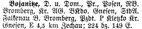 Bojanitze, Gnesen, Bromberg, Posen, Preussen