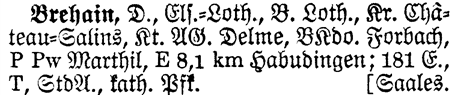 Kr Château-Salins - The Kreis for Brehain is Château-Salins. A Kreis is a government district (similar to a U.S. county).