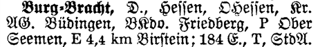 Prov OHessen - The Province shows which Province or State the place is located in. Burg-Bracht is located in OHessen.