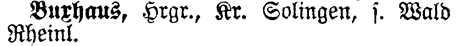 See Wald Rheinl. - A See notation means the entry is dependent on another entry. In this case, Buxhaus is dependent on Wald Rheinl., which should be consulted for additional information.