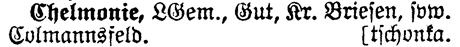 Kr Briesen - The Kreis for Chelmonie is Briesen. A Kreis is a government district (similar to a U.S. county).