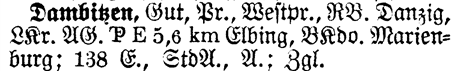 Prov Westpr. - The Province shows which Province or State the place is located in. Dambitzen is located in Westpreussen.