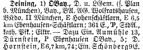 The list below are those places from the Meyers Gazetteer that are nearby to Deining