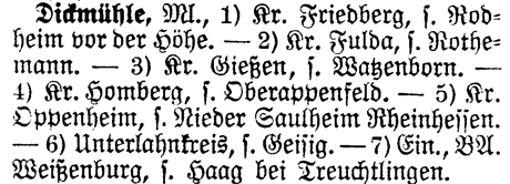 Kr Friedberg - The Kreis for Dickmühle is Friedberg. A Kreis is a government district (similar to a U.S. county).