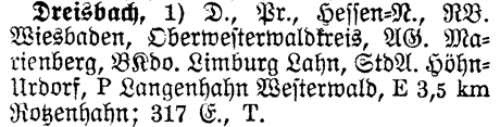 Prov Hess. -N. - The Province shows which Province or State the place is located in. Dreisbach is located in Hessen-Nassau.