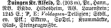Entries where Duingen Kr. Alfeld is referenced as StdA