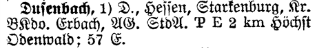 The list below are those places from the Meyers Gazetteer that are nearby to Dusenbach