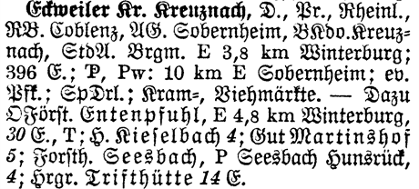 Entries where Eckweiler. Kr. Kreuznach is referenced as See