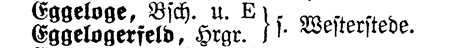 See Westerstede - A See notation means the entry is dependent on another entry. In this case, Eggeloge is dependent on Westerstede, which should be consulted for additional information.