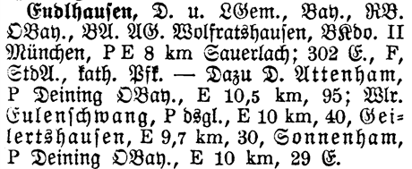 Type D. u. LGem. - Endlhausen is a Dorf und Landgemeinde (Village and Rural Community).