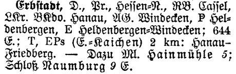 Prov Hess. -N. - The Province shows which Province or State the place is located in. Erbstadt is located in Hessen-Nassau.