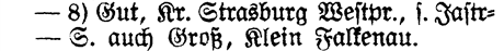Kr Strasburg Westpr. - The Kreis for Falkenau is Strasburg Westpr. A Kreis is a government district (similar to a U.S. county).