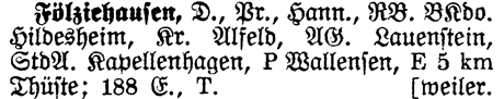 Prov Hann. - The Province shows which Province or State the place is located in. Fölziehausen is located in Hannover.