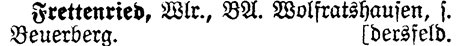 See Beuerberg - A See notation means the entry is dependent on another entry. In this case, Frettenried is dependent on Beuerberg, which should be consulted for additional information.