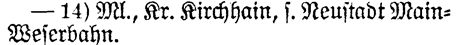 See Neustadt Main-Weserbahn - A See notation means the entry is dependent on another entry. In this case, Fuchsmühle is dependent on Neustadt Main-Weserbahn, which should be consulted for additional information.