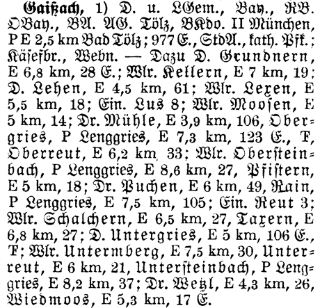 The list below are those places from the Meyers Gazetteer that are nearby to Gaissach
