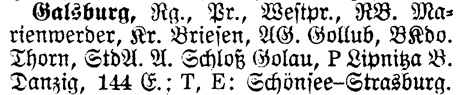 Prov Westpr. - The Province shows which Province or State the place is located in. Galsburg is located in Westpreussen.