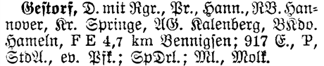 Prov Hann. - The Province shows which Province or State the place is located in. Gestorf is located in Hannover.