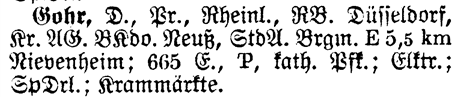 Prov Rheinl. - The Province shows which Province or State the place is located in. Gohr is located in Rheinland.