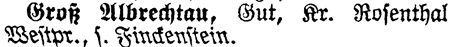 See Finckenstein - A See notation means the entry is dependent on another entry. In this case, Gross Albrechtau is dependent on Finckenstein, which should be consulted for additional information.