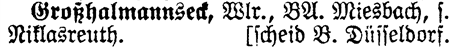 See Niklasreuth - A See notation means the entry is dependent on another entry. In this case, Grosshalmannseck is dependent on Niklasreuth, which should be consulted for additional information.
