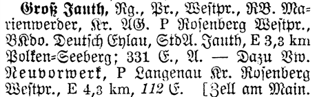 Prov Westpr. - The Province shows which Province or State the place is located in. Gross Jauth is located in Westpreussen.