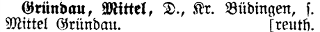 See Mittel Gründau - A See notation means the entry is dependent on another entry. In this case, Gründau, Mittel is dependent on Mittel Gründau, which should be consulted for additional information.