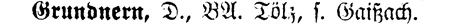 See Gaissach - A See notation means the entry is dependent on another entry. In this case, Grundnern is dependent on Gaissach, which should be consulted for additional information.