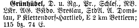 A Domslau - The Amtsbezirk for Grünhübel is Domslau. The Amtsbezirk is the District Office.