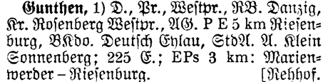Prov Westpr. - The Province shows which Province or State the place is located in. Gunthen is located in Westpreussen.