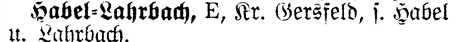 See Lahrbach - A See notation means the entry is dependent on another entry. In this case, Habel-Lahrbach is dependent on Lahrbach, which should be consulted for additional information.