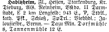 The list below are those places from the Meyers Gazetteer that are nearby to Habitzheim