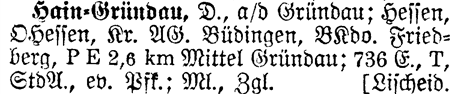 The list below are those places from the Meyers Gazetteer that are nearby to Hain-Gründau
