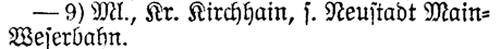 See Neustadt Main-Weserbahn - A See notation means the entry is dependent on another entry. In this case, Hainmühle is dependent on Neustadt Main-Weserbahn, which should be consulted for additional information.
