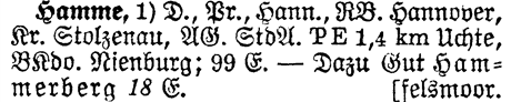 Prov Hann. - The Province shows which Province or State the place is located in. Hamme is located in Hannover.