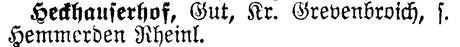 See Hemmerden Rheinl. - A See notation means the entry is dependent on another entry. In this case, Heckhauserhof is dependent on Hemmerden Rheinl., which should be consulted for additional information.